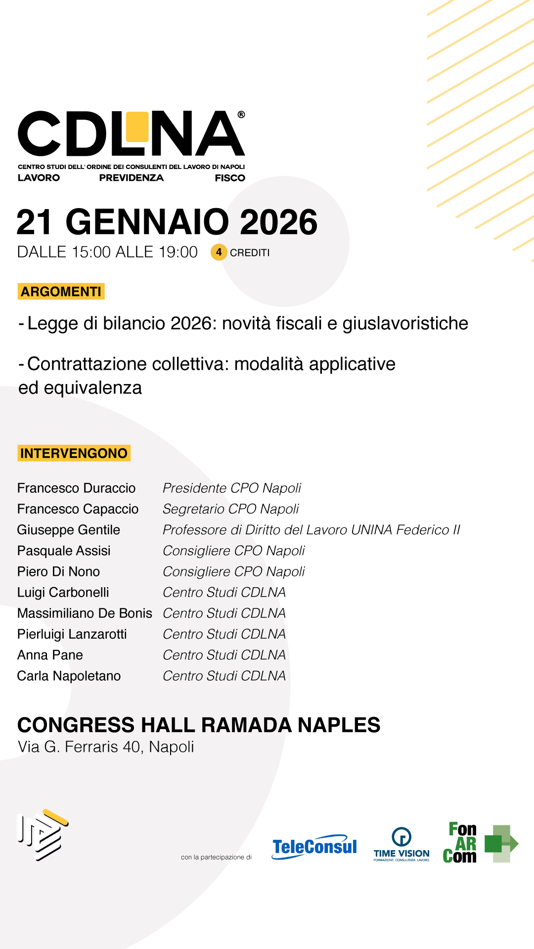 La partecipazione all'evento da diritto a 4 crediti formativi.