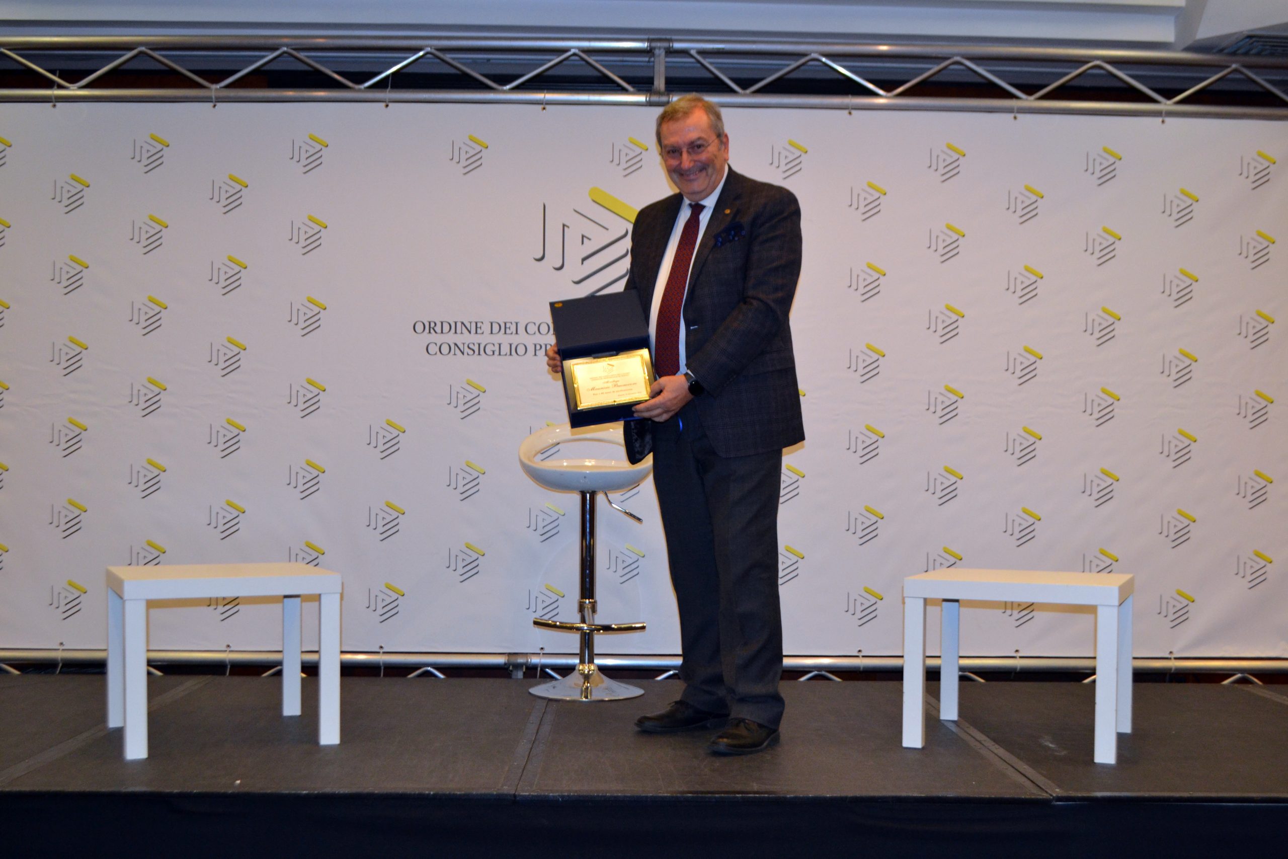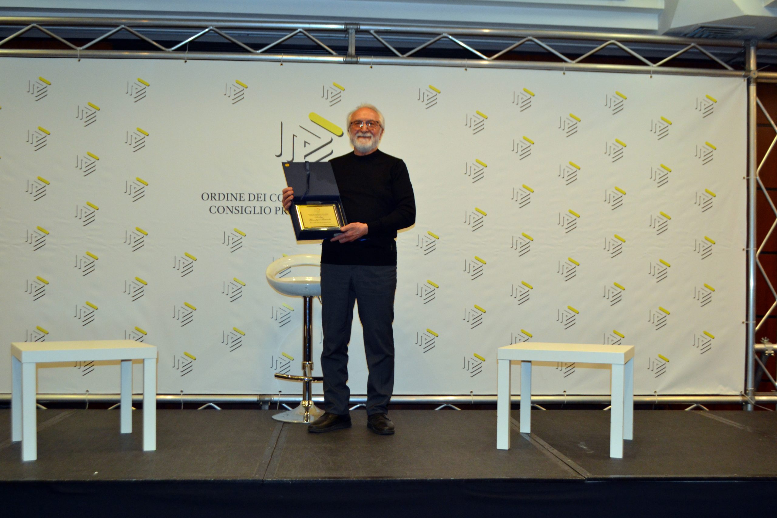 ancora presente nella nostra comunità, abbiamo consegnato la targa personalmente, riconoscendo il suo ruolo di testimone diretto dei sessant’anni del nostro percorso. Un momento di grande commozione nel quale il nostro caro “Peppino”, oggi ultranovantenne, tra gli applausi dei presenti, ha ricordato alcuni momenti storici vissuti nei suoi 60 anni ininterrotti di iscrizione all’Albo, lanciando messaggi di incoraggiamento ai giovani presenti.