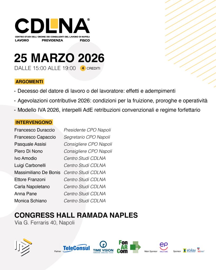 25 marzo 2026 – Evento formativo – Congress Hall Ramada Naples